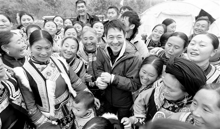 “我家里的人都特别支持我(做慈善)” “做慈善其实并不是我一个人的事,大家一起努力才能成功,有了我们是一家人的信念,一定能战胜困难。” 昨日,李连杰及壹基金工作团队继续在四川阿坝藏区进行爱心之旅,当天他们一行走访了位于茂县的羌族技艺培训中心,随后又赶赴阿坝州儿童福利院慰问,为那里的小孩子们送去糖果和奶粉,面对那些可爱娃娃提出的签名要求,李连杰有求必应,给他们签完名还忘不了摸摸他们的小脑袋。李连杰这次四川之行,特别通过其助手向媒体打过招呼,不聊慈善之外的话题。 看见娃娃涌起父爱 李连杰此行帮助当地羌女勤劳致富只是其中一个目的,他还要对地震中受毁的阿坝州儿童福利院进行考察,以便对其重建提供数百万的援助资金。在儿童福利院的板房文艺活动室内,李连杰见到了24张纯真可爱的小孩笑脸,这群娃娃排成两行,李连杰亲自把糖和奶粉交给他们,孩子们都亲切地叫他李叔叔。很多娃娃平时都在电影里看过“李叔叔”的英姿,因此纷纷找来笔和纸向他要签名,可能是看到他们,李连杰想起了自己和利智所生的那双女儿Jane和Jetta,眼神中立刻充满慈爱,习惯性地摸摸小孩子的头。见如此温馨场面,旁边记者问他:“李先生,您长期在外为慈善事业奔波,是否会影响到家人?”这个问题触动了李连杰,他沉默了一下,轻轻地说了句:“我家里的人都特别支持我。” 残疾歌女唱哭“李叔叔” 在儿童福利院,有位情况最特殊的孤儿,这个叫民川的18岁女孩,由于患上先天性的软骨症,身体无法动弹,模样就像6岁的小童。儿童福利院朗院长介绍,民川知道李连杰要来特别兴奋,民川对李连杰说:“不久前我还看过你演的《功夫之王》呢,特别喜欢你演的戏。”之后,民川唱起了《童话》,“我会变成童话里,你爱的那个天使,张开双手,变成翅膀守护你……”当她唱到高潮部分,记者发现蹲在民川旁边的李连杰双眼通红,已是泪花闪闪的“李叔叔”一把攥住了小民川。 鼓励羌女生产自救 当天,李连杰还走访了茂县境内的羌绣技艺培训基地,之后,他又继续赶往综渠乡的羌绣帮扶点,探望那里的绣女朱召应。朱召应和丈夫在汶川大地震中双双受伤,她的脊柱受损不能站立,她的儿女又有残疾,生活非常艰难,后来朱召应加入羌族妇女就业帮扶计划,每天埋头做羌绣,生活有了很大改善。李连杰在她居住的帐篷里,不断鼓励这个坐在轮椅上的坚强女性,“你一定要继续加油,总会慢慢好起来的。”离开茂县之前,有人把刚刚收到的一条新闻短信拿给李连杰看,原来这是本报“华西手机报”发出的一条新闻,正是转载昨日本报的报道《慈善大侠李连杰来到咱羌寨》,李连杰看了后很是高兴,不过他说:“做慈善其实并不是我一个人的事,大家一起努力才能成功,有了我们是一家人的信念,一定能战胜困难。” 特派记者杨帆汶川报道摄影刘亮 |