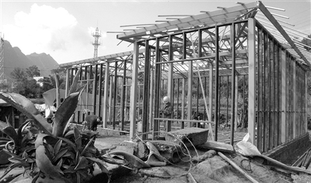 柱头是钢的,檩子是钢的,门框、窗框全是钢的……昨日中午,记者在极重灾区北川代管的安县永安镇向阳村二组,见到了一幢奇特的全部由钢条焊接而成的房屋,房屋是一个钢条组成的整体,乖巧的样子犹如一个玩具积木,在蓝天阳光下,黄色的屋架甚是好看。 修4次房这回整结实家人无忧 房屋的主人名叫谷立东,今年55岁。特大地震发生时,谷立东家一楼一底小洋房全部被震垮,正在二楼晾衣服的妻子受了重伤,跟随妻子在楼上的外孙女死亡。与此同时,一旁低矮的猪圈也垮塌了,里面的肥猪被活活压死。房屋垮塌的惨重灾难让谷立东发誓:一定要修一幢结实的房子,给家人一个安全的保障。 半个月前,一个钢结构公司在北川宣传他们的全钢结构造屋法,谷立东很感兴趣,当即签订了绵阳灾区首幢全钢结构房屋协议。对方承诺,20天完成房屋修建。“再过几天,我的房子就完工了,动作好快哦。”在房前屋后忙着的谷立东笑呵呵地对记者说。 全钢焊接抗十级地震没有问题 在谷立东家的院子里,堆满了修房的建材,有宽大但很轻巧的青瓦,有薄薄的但一经水淋便坚硬异常的墙板。灰白色的墙板是一种新型建材,可以根据需要用锯子自由裁剪,记者看到,施工人员根据墙壁的用量裁剪后,用螺钉很轻易就将其固定到房架上。 在现场指挥施工的某公司负责人贺先生介绍,房屋的墙内外都固定了墙板,中间填充了轻质混凝土,隔音、隔热、防潮,而且非常坚固耐用。由于房子全部用钢条焊接而成,个别连接使用铆钉,所以随便咋个摇晃房屋都不会垮塌,就像一个块状物即使滚动也不会散架伤人。有关专家认为,这种钢架房抗十级地震完全没有问题。 造价不高“样板房”将成参考范本 房屋是全钢架的,又有那么多新型建材,工期又短暂,造价是不是很高呢?据谷立东介绍,他的这幢房屋建筑面积90平方米,耗钢材10吨,加上其他材料,整体造价不过八九万块钱,还不到一千元一平方米。由于他的这幢楼是灾区的第一幢样板房,所以他跟建筑公司讲了“广告价”,6万元就拿下来了。“这个价格比起用砖瓦造房子价格上相对低一些,但重要的是安全性能高。”谷说。 北川县委有关部门负责人介绍,灾区已慢慢进入寒冷的季节,像这种造价不高、安全性能不错、工期短暂的建房方式值得推广,“本周房屋落成后,将在这里开现场会,让急需建房的灾区群众参考”。 文/图记者青兴海实习生罗玉 |