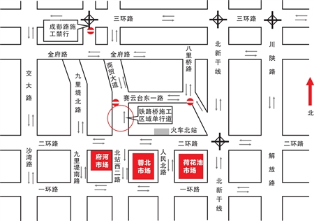 本报讯(徐晶晶记者李东阳实习生向莉)从今天开始,至12月31日,成都市五块石跨线桥将进行半幅桥面道路封闭施工。成都市交管局将对商贸大道(二环路至赛云台东一路)实行机动车由南向北单向行驶。这样一来,市民需要注意选择合适的绕行线路。 1、五块石区域到达性车辆,可通过金府路商贸大道路口、八里桥路、五块石路口进入五块石区域,在商贸大道二段、赛云台东一路、站北路、八里桥路实行区域循环。建议优先选择从金府路商贸大道路口或八里桥路进入,尽量避免从车流量较大二环路五块石路口进入; 2、由北向南需进入城区或火车北站、荷花池市场、蓉北市场、府河桥市场的通过性车辆,建议绕道: (1)由交大路通过二环路交大路口或一环路沙湾路口经一、二环路进行转换; (2)由九里堤北路通过二环路九里堤路口、一环路西北桥路口经一、二环路进行转换; (3)由北新干线通过二环路荷花池跨线桥、一环路花圃桥进行转换; (4)由川陕路通过高笋塘路口、梁家巷路口经一、二环路进行转换; 3、由东向北需到达五块石区域的车辆,建议通过三环路、青龙立交、金府路由商贸大道、八里桥路驶入; 4、由西向北需到达五块石区域的车辆,建议通过三环路、金府路、二环路五块石路口由商贸大道、八里桥路驶入; 5、由南向北需到达五块石区域的车辆,建议通过川陕路、金府路、二环路五块石路口由商贸大道、八里桥路驶入。 |