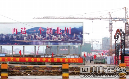 新县城自建工程昨进行最后一次集中开工,500多名施工人员在雨中誓师,新县城目前雏形初现,部分城市公路已可以使用