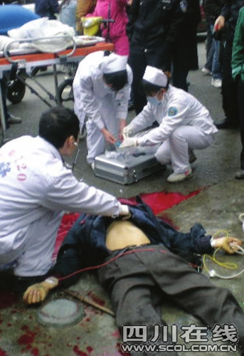 昨日上午,玉双路5号大院门前,两名收荒匠因争抢生意发生口角后打斗,其中一名收荒匠砍死另一名收荒匠