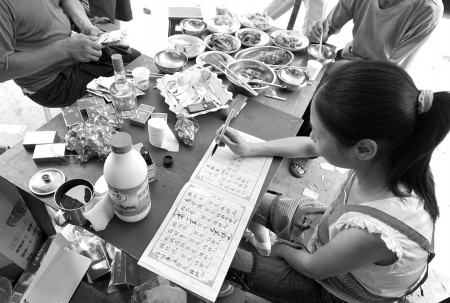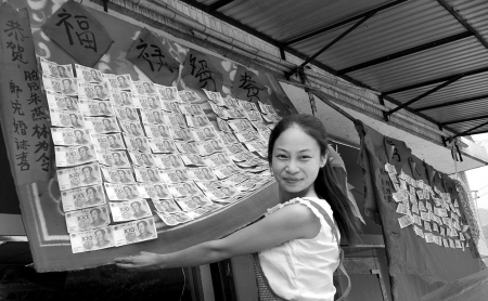 结婚收红包是再平常不过的习俗礼节了,然而将礼金张贴示众,则实属少见。 日前,记者路经雅安一小镇时就见到这一幕:公路边一屋檐下,两张耀眼的大红毛毯上,张贴着密密麻麻的百元人民币,此景吸引了不少路人,纷纷驻足围观。 6月30日上午,是家住雅安两河口的王大姐家娶媳妇的大喜日子。一大早,王大姐及家人就热情地恭候在家门口,等待亲友的光临。 “恭喜、恭喜……”陆续到来的嘉宾们,纷纷将一个个红包奉上。 “张大哥礼金100元!”“蒋二嫂礼金500元……”家门口,一位姑娘伏在一张摆满喜糖喜烟的方桌上, 将来宾们送上的礼金数目和姓名,详细地记录在一个账本上。 据王大姐介绍,大红毛毯上的百元人民币,是新郎的叔叔和姑姑送的彩礼,在当地叫挂彩。 “为什么其他客人送的礼金就不张贴呢?”面对记者的疑惑,王大姐解释说,“这叫挂彩。按当地习俗,挂彩是有规矩的,一般只有娶媳妇的这方(男方)的直系亲属送的礼金才能挂彩。” 王大姐说,其他客人送得再多,也只能写在账本上。 “这是为什么呢?”一旁的李二哥说:“表示娶媳妇的吉祥如意,同时也让女方的家人感觉有面子。” 据悉,有的娶亲人家,还要将“彩毯”悬挂三天三夜。 记者数了数,“彩毯”上张贴的礼金总共有16000多元。再看记账姑娘的账本上,依次记录着近百人从50元到500元不等的贺礼。 专程从城里赶来参加婚礼的刘小姐感叹道:“原以为,如今农村里办喜事还跟以前一样,送些毛毯、被子等实物,没想到礼金如此丰厚。”记者朱建国摄影报道 |
