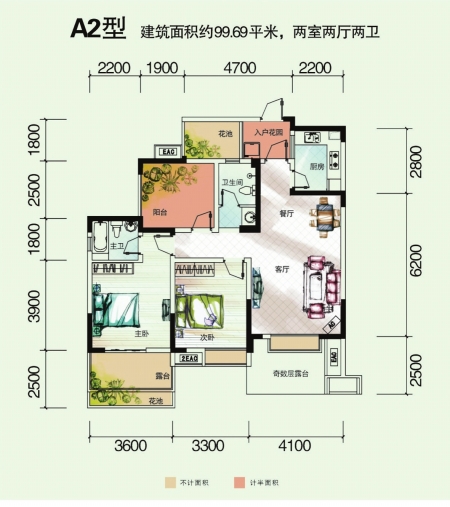 面积采光区。尤其是主卧,主卫生间和9平米的露台花池均是享受生活的细节。当然,如果把露台围起来做成全明采光书房,主人的休闲方式又即刻多出一种选择。如果觉得两间卧室不够住,还可以把卫生间旁的阳台同样利用起来,这便又多出一间面积不算小的卧室。