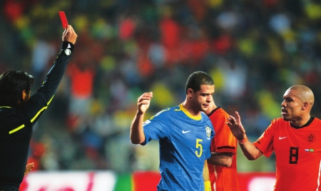 主裁判向巴西队5号梅洛出示红牌图据IC