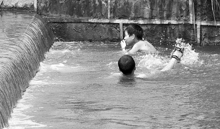 了衣裤跳进浅水处游泳、玩乐。他们时而下沉,时而上浮,你推我拉,而附近却没有一名家长照看。