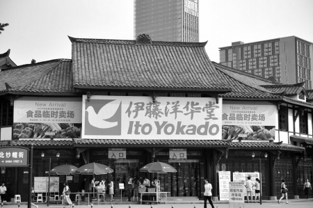 记者姚长寿摄影杨涛V:“现在我们原春熙路店负一楼的食品店暂时借用这里,大约借用1个月吧。”昨日,借用大慈寺纱帽街旁一个院落的伊藤春熙店的食品卖场(右图),开始正式营业。因为现在伊藤春熙店正在装修,所以临时商议将大慈寺纱帽街旁,暂时闲置的一处院落作为一个临时卖场,预计使用时间接近1个月。