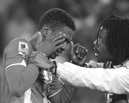 “苏亚雷斯成了英雄,他把本该属于我们的进球用手挡了出来。尔后我罚失了点球,当时就是这样。”说完这话,吉安这位非洲男人哭了,嚎啕大哭,不管不顾。非洲大地上,凛冽的寒风中夹杂着他的哭声……