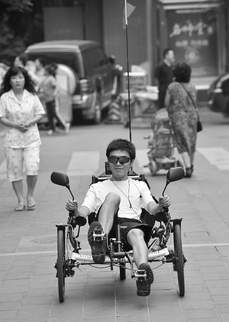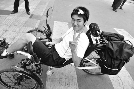 昨日中午,骑电瓶车路过成都金河路的市民吴先生看到:一面国旗正在自行车道中快速穿行。他一拧把手,飙车向前一探究竟。原来,与国旗相连的是一辆三轮卧式自行车,车身高度只有婴儿手推车那么高。 卧式自行车花了5000多元 蹬自行车的小伙子戴着墨镜,听着MP3,躺在距离地面不到半米的地方蹬车,一路引来无数人回眸。 “朋友给我做的。”小伙子叫付明铭,这辆车花费了5000多元,在辽宁抚顺的朋友那里定制,然后快递到成都的。车子按照他的腿长、臂长进行设计。车身上2米高的红旗,是付明铭故意装上去的。“车太矮,目标 不明显。这样不容易被撞到。”付明铭说。 这辆以黑白为主色调的自行车很“拉风”。前排并列的两个轮子偏小,踏板和座椅位于两轮中间,后排靠背处是后轮,轮上的支架方便挂运重物。4个后视镜、变速器、手刹,再配上专门放水瓶的卡槽和放GPS、手机的架子,车子有很多“人性化”设计。 速度感强烈但不易存放 穿梭在大街小巷,付明铭有一种“开飞机”的感觉。“底盘低,速度感很强烈。”骑累了,拉上手刹,车子就变成了躺椅。 但车的“占地面积”大,小区自行车棚不容易放入,又不好抢占停车位。付明铭就和车一起乘电梯上楼,再把车塞进阳台存放。 付明铭骑车时能得到200%的回头率。平时出去,他基本不锁车,要么就放在有人看守的地方,要么放在“自己能看见的地方”。如此自信是因为他相信:“贼不会想在大街上被注目,偷这辆车目标太明显了。” 计划:明年骑车环游中国 现在,付明铭和4名买了车的朋友成立了一个名叫“成都趟友”的小圈子,每周组织一次活动。 付明铭心中有个计划,明年骑着这辆车去环游中国。记者王浩野摄影吴小川 |
