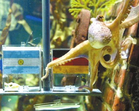 越来越多的事实表明,德国的章鱼“保罗”有望成为本届世界杯的大明星,它的表现让球王贝利也有种高山仰止的感觉。 在成功地“预测”了德国队本届世界杯的前4场比赛后,昨天,它又成功预测了1/4决赛德国队击败阿根廷队的结果!这也是它连续猜中的第5场比赛。 “保罗”出神入化的预测能力的确令人恐惧:每场比赛开始前,“保罗”都会在标有对阵双方国旗的玻璃缸中做出选择,它所选择的一方便会成为比赛的胜利者。 德阿大战前,德国奥博豪森的海洋馆馆员把两个完全一样的贻贝放入分别印有德、阿旗帜的玻璃缸,“保罗”考虑了长达一小时”,最终取出了印有德国旗帜玻璃缸里的贝类大快朵颐。所有德迷对此不禁长出了一口气,而阿根廷人则难免因此而感到紧张。 两岁的章鱼“保罗”来自德国奥博豪森的一间海洋馆,它生于英国,在德国长大。保罗本届世界杯上已经“成功预测”了德国胜澳大利亚、加纳,输给塞尔维亚的小组赛赛果,另外,它还预测到了1/8决赛德国将击败英格兰。而它预测的欧洲杯赛事,命中率也有8成。 赛前,“保罗”超凡的预测能力便引起了阿根廷媒体的恐惧,《日报》甚至充满怨恨地将这只神巴西球迷幸灾乐祸 奇的章鱼写进了菜谱:“我们只需要四个普通的土豆,橄榄油,再加上少许胡椒粉。仅仅这些,就足够让保罗倒大霉。”星级大厨尼古拉斯·贝德罗表示:“我们要抓住它,并把它放在纸上。然后我们痛打这只章鱼,以便让它按照我们的想法进行预测。最后,再把它浸在沸水里。”显然,阿根廷人恨不得将这只名叫“保罗”的章鱼变成“海鲜汤”。 对此,德国媒体回应说,“真是没劲。” |