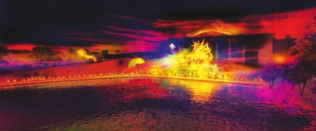 “坐”在鱼嘴看《道解都江堰》,这绝对不是在开玩笑!中国首座遗址剧场就在都江堰,大型实景演出《道解都江堰》距离都江堰水利工程三大主体之一的“鱼嘴”仅600米……废弃电站机房作演出舞台,岷江、离堆、安澜索桥、二王庙、山峰作背景;500多名演员演绎、描绘着都江堰的悠久历史……由《印象·刘三姐》总策划人梅帅 元先生担纲总策划的大型实景演出《道解都江堰》现已神秘揭幕。这个夏天,“最潮夜游”现身都江堰,水上观看《道解都江堰》,亲身体验岷江水流之上千年文化底蕴和人与自然和谐相处的美妙画卷。 梅帅元担纲总策划每晚激情上演 演出将观众席前的水面、右侧的山坡、左侧的岷江以及目光所及的远景山峰和建筑作为演出背景,利用高科技的声光技术、造浪技术和精致的大型布景,营造出如梦如幻、如诗如画的美景。据悉,为该剧量身定做的实景剧场位于都江堰景区鱼嘴上游,总占地130亩,原是废弃的水电站大坝,现在则被用作演出舞台。该剧由成功策划、运作了桂林阳朔的《印象·刘三姐》、河南嵩山少林寺的《禅宗少林·音乐大典》和《井冈山》等大型实景剧的梅帅元担纲总策划,国内实景演出知名导演、音乐制作人组成创作班底。从即日起,该剧将作为都江堰旅游景 区的固定节目,每晚精彩演绎。 20万株油菜花水中升起500真人现场演绎 以奔腾岷江作背景,以废弃大坝作舞台的《道解都江堰》在都江堰景区内的中国首座遗址剧场演绎。除一旁奔腾的岷江水外,远处的离堆、安澜索桥、二王庙以及远景山峰也成为其背景,2000余个观众坐席也设在岷江旁的水域之上,近处的观看区域距离主舞台仅50余米。 此外,演出利用高科技的声光技术和造浪技术,采用从水中升起油菜花、撼地的洪水等大型舞美效果。其中,“鱼嘴”背后会打上灯光,水底也有大量灯光射出,在空旷的水面上营造出朦胧独特的场景之美。而大多数的场景也都“藏”在观众席近前的水域中,届时伴随不同的主题由水下升起。 记者王科 《道解都江堰》五大篇章 ■第一幕《失道》“疯狂年代” 一场上世纪五十年代至今各时代典型的多声部交错与融合,在幽默和批判的边缘,展现一个社会发展和变迁的轨迹。■第二幕《问道》“寻找本源” 灾难过后,世界回复如初,纵目人从三星堆苏醒,老子像沉默无语,似向我们讲述“道”的奥妙……■第三幕《解道》“天人合一” 时光回溯两千年,我们的先人遵循“道”的思想,用竹笼杩槎,火烧水浇,在岷江上创造了一个治水奇迹……■第四幕《平常道》“天府家园” 天府之国的生活印象,宁静、悠远、安逸,充满家的回忆,体现着简单却珍贵的自然、平常之“道”。■第五幕《非常道》“千年感恩” 从雪山出发,走过藏羌高原,川西坝子,直至平原,由秦朝出发,穿过汉唐明月,宋明清风,直至今天行走了两千年的感恩队伍绵绵不绝…… 咨询电话:(028)82009797 |