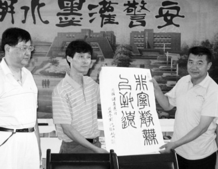 7月10日,来自西子湖畔,享誉中外的西泠印社的社员亲赴位于5·12地震重灾区的四川警安职业学院,以“西湖水墨润警安”为主题,励志灾区学子,弘扬传统文化,提高学子素养。当天,书画家们除现场展示才艺外,还带来了西泠印社副社长、中国印学博物馆馆长、浙江省书法家协会首席顾问刘江先生,以及西泠印社名誉副社长、浙江省书协顾问吕国璋先生的作品,两位书法大家把自己的两幅力作赠送给了学院。据了解,素有“天下第一名社”盛誉的西泠印社, 创立于1904年,是海内外研究金石篆刻历史最悠久、成就最高、影响最广的学术团体。 记者杨帆 |