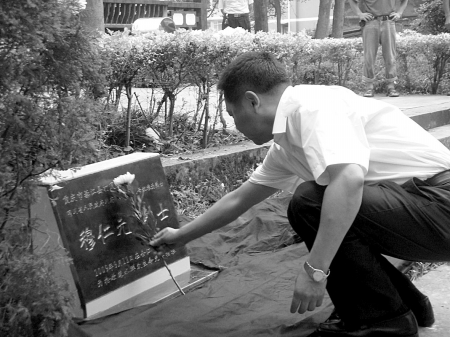 昨日上午,位于合江县城鹅公山的合江烈士陵园迎来一位新的英雄:一天两次跳进滚滚长江勇救落水女孩、不幸遇难的合江好人穆仁元(本报2009年9月14日曾报道)。 经省政府批准为革命烈士后,穆仁元的骨灰昨日被安放在合江烈士陵园。 救起的她眼泪不住掉下来 为参加父亲的骨灰安葬仪式,穆仁元的儿子穆红军10天前辞去在广州的工作赶回合江,“我要陪爸爸最后一程。” 上午10点,骨灰安放正式开始。陵园四周已围满了前来送行的群众。 被穆仁元救起的女孩王登焱跟着父亲来了,她站在队列里,眼泪不住地掉下来。 合江县委书记李波高度赞扬穆仁元舍己救人的英雄事迹,“他是一个默默无闻、朴实平凡的人,但却在生与死的考验中,用实际行动谱写了一曲感天动地、可歌可泣的英雄壮歌。” 合江县长周毅将穆仁元烈士的《革命烈士证明书》交给穆红军。 穆红军手捧证书,向摆放在鲜花丛中的父亲遗骨深深鞠躬。 重庆赶来白发人送黑发人 “儿啊,妈来看你了。”安放仪式现场,一位白发苍苍的老人在孙子的搀扶下来到墓碑前,颤抖着用一块手帕把墓碑抹了又抹。 随后,老人将一个竹筐里装着的白菊花撒在墓地上,低头垂泪。 这位69岁的老人是穆仁元的母亲袁登芝。 为赶来送儿子最后一程,老人前一天从重庆市綦江县打通镇老家出发,走了两个小时后,又坐了3个小时的班车来到合江。 昨日清晨,袁妈妈顾不得吃早饭,早早就来到烈士陵园,“这里以后就是我儿的‘家’了。” 袁妈妈说,儿子牺牲后,合江群众自发为穆仁元捐款,綦江县当地政府也为她翻盖了房屋。 袁妈妈说:“我为有这样的儿子感到骄傲。” 罗林记者陈章采文/图 |