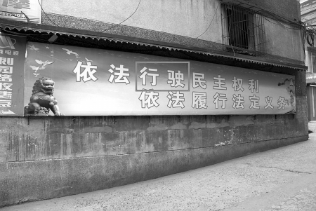 泸州江阳区一社区一幅张贴在路边的巨大标语让居民们感到很“雷人”:“依法行驶民主权利,依法履行法定义务。”居民们说,这民主权利咋能“行驶”呢?