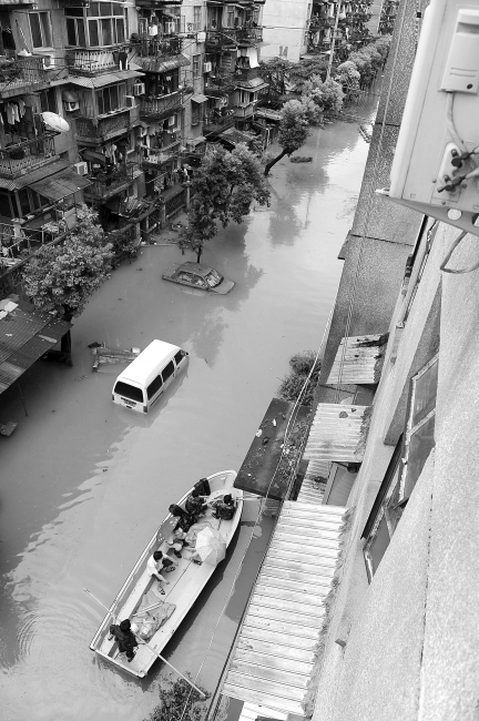 安徽省安庆市特大暴雨造成了城市严重内涝,城区8000余户居民家中被淹,2万群众被洪水围困