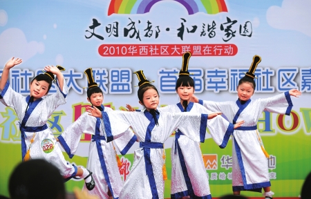 第五站“社区时尚宝贝秀”昨日走进华润翡翠城 讲故事、吹长琴、弹古筝、国学舞蹈《弟子规》……昨日上午,70余名小宝贝们在华润翡翠城三期门口,亮出绝活儿,比拼“武艺”。其中,翡翠苹果组合表演的《弟子规》歌舞,最具特色。6个小姑娘身着白长袍,将朗诵、演唱和舞蹈融为一体,推广国学,赢得评委的青睐,勇夺冠军。 下周末,厨艺大赛将走进万科城市花园。欢迎市民拨打报名热线86969110,秀出你的特色私房菜。 父母热衷自制表演服 昨天参赛的宝贝有的是兄弟姐妹档,有的是同学档。一场宝贝秀成了家庭大联谊,同学大聚会。常常一个宝贝在台上表演,几个宝贝在台下伴舞或者跟跳。不少宝贝都穿着父母亲手设计和缝制的表演服比赛。“快乐小妹”组合5名小宝贝的漂亮粉色公主裙就出自母亲之手,手上和脚上还戴着母亲们穿制的手链和脚链。“亲手制作表演服小朋友表演《弟子规》装,让宝贝们体会环保概念,同时也秀出亲子魅力,是很好的事。”评委王雪说。 《弟子规》勇夺一等奖 身着白色长袍的6个小宝贝们带来了集朗诵、演唱和舞蹈为一体的国学舞蹈《弟子规》。别致的造型和训练有素的表演,点燃台下的激情,赢得了一等奖,获得价值2380元的龅牙兔儿童情商乐园五天四夜的童子军活动、一件零帕饮料、3盒21金维他和奶糖礼盒。一号选手陈睿打破头号选手不易得高分的常规,用激情和笑容感染全场,赢得评委的好感,夺得二等奖。来自东光社区的“快乐小妹”组合凭一段舞蹈《不怕不怕》,夺得三等奖。除此之外,评委们还评出最佳创意宝贝、最佳表演宝贝、最佳口才宝贝、最佳人气宝贝、最幽默宝贝等单项奖。 下周相约万科城市花园 下周周末,厨艺大赛将走进万科城市花园。欢迎拨打本报新闻热线86969110报名。本报合作媒体腾讯大成网以“构建文明成都共建和谐家园”为题,对本报举办的“2010华西社区大联盟在行动”进行在线实时报道,市民可登录http://cd.qq.com/zt2010/hexie/index.htm,了解活动最新进展。 记者席秦岭罗琴摄影杨涛 相关报道链接05版 |