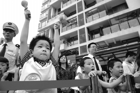 昨日上午10时许,华润翡翠城三期门口人山人海,家长们带着孩子们早早来到活动现场,等待比赛开始。