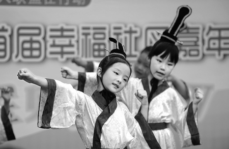 “弟子规,圣人训,首孝悌……”舞台上,身着古装的6个小宝贝们带来了集朗诵、演唱和舞蹈融为一体的国学舞蹈《弟子规》。她们叫“翡翠苹果”组合,别致的造型和整齐划一的表演,让她们赢得了一等奖。