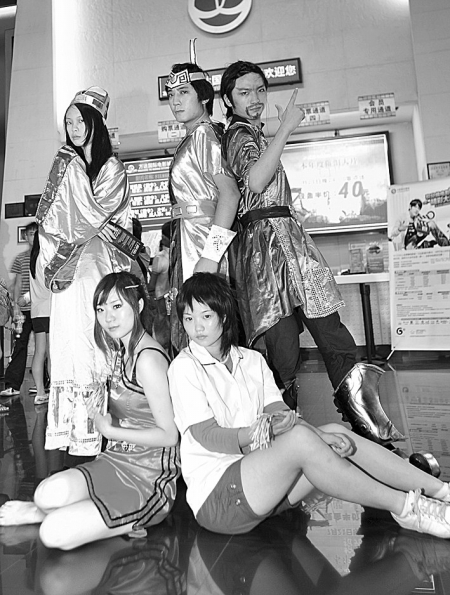 本报讯(记者蔡宇摄影刘陈平)昨日下午2点,成都二环路东二段某影城突然出现5名服饰华丽的“古代人”,摆出种种经典造型很是扯人眼球。“哎呀,是动画电影里的角色!”原来是成都金沙遗址博物馆派出的特别使者,为新近上映的今年首部国产动画电影《梦回金沙城》宣传造势。 《梦回金沙城》讲的是当代少年“小龙”穿越时空,来到古代金沙国的冒险经历。COSPLAY秀让这一电影情节在观众面前变成现实,小龙、花儿、将军、国王、文臣5位主角全部走出银幕,来到观众身边展开互动(下图)。 2004年,杭州盛世龙图动画有限公司决定拍摄一部百分百国产的3D动画电影。公司多位高层跑遍全国,最终被金沙遗址的古蜀文明征服。当年7月,《梦回金沙城》摄制组在南京成立,近800位制作人员汇聚在一起,在长达5年的电影制作过程中创造了“第一部纯手绘3D动画电影”等多项中国第一。并且,从前期剧本创作到后期特效制作,都是百分百国产。 |