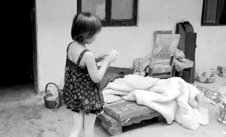 门外走廊搁张床没床单没凉席苍蝇乱飞 当夜幕降临,同龄人抱着洋娃娃由父母哄着入睡时,琳琳却在家门前的走廊里独自与苍蝇、蚊子“作战”,实在受不了就把铺盖蒙到头上,刮风下雨也一样。 成都成华区青龙乡石岭村合家园小区,6岁的琳琳跟着父亲一起生活。由于晚上尿床,弄臭屋子,琳琳被父亲关到了门外的走廊里睡觉,迄今已持续了1个多月。 昨日上午11点过,琳琳独自坐在屋内看电视。她的头发乱蓬蓬的,腿上很多泥点子,一件黑底红点吊带连衣裙皱巴巴地打着结,明显很久没洗了。 不上学的时候,都是琳琳独自在家。只有在白天,她才能在屋子里“为所欲为”:想看哪个频道自己决定,想躺在床上也没人阻止。 一旦夜幕降临,父亲回到家,琳琳的活动空间就只限门外的那张小床。 琳琳和父亲租住的是合家园一楼的一个小套一,门外走廊里,摆着一张小床。没有床单,也没有凉席,乱糟糟的棉絮直接摊在上面,有一半还搭在地上。一床军绿色的被子团成卷状,发挥着枕头的作用。小床散发出一股尿味,不时还有苍蝇在周围飞来飞去。 夏天蚊子多,琳琳说,蚊子咬不到她,因为一感觉到有蚊子,她就“赶紧把铺盖蒙到头上”。闷热也不管,刮风下雨时,这招也管用。 “平时她就睡在外面,他爸不让她进屋。”一名邻居说,此前半夜常常听到琳琳的父亲在训斥她又尿床,弄臭了屋子。之后琳琳就被关到屋外睡觉,“至少已持续了1个多月”。 |