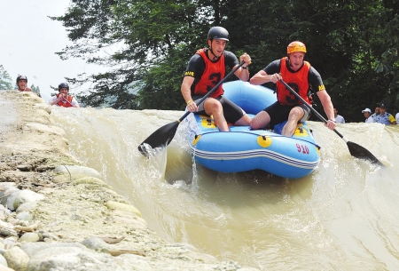 昨天,中国都江堰(虹口)国际漂流节在虹口风景区漂流中心开幕。7个国家和地区参赛选手共17支代表队参加自然水域漂流大赛,冠亚军分别是新西兰、澳大利亚选手。 本次漂流节由国家体育总局水上运动管理中心、省体育局主办,成都体育局、旅游局、都江堰市政府承办。 昨天的国际漂流节吸引了不少外国选手,匈牙利、英国、澳大利亚、新西兰都有队伍参赛,中国香港、中国澳门及北京、贵州、浙江等地也有选手参赛。 在双人艇10公里自然水域竞速漂流中,新西兰的选手夺魁,澳大利亚选手屈居第二,成都飞来峰旅游开发公司代表队获得第三名。记者阮长安刘亮实习生倪承英摄影报道 |
