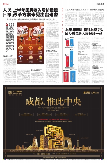 上半年四川CPI上涨2% 城乡居民收入增长超一成
