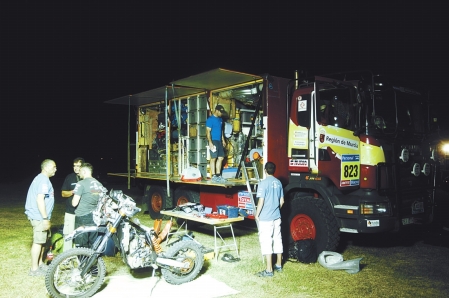 成都车队昨日提车做赛前最后一次调试 北京时间昨天,成都农商银行车队的达喀尔战车终于亮相,当泛着亮光的389号战车出现在达喀尔赛事维修区时,立即引起了维修区内中国车手周勇的关注。经过简单维修后,成都车手周远德将对它进行赛前的最后一次调试。 当地时间28日傍晚,北京时间29日上午,布宜诺斯艾利斯一大学校园内,无数的赛车正在紧张调试。这里是达喀尔拉力赛指定的赛车维修区。各车队的参赛车辆,经港口提出后,几乎都会在这里进行最后的维修,最后正式送往组委会车检。傍晚,本报记者与成都农商银行车队副经理、德国人尤根一道,驾车从宾馆出发,抵达赛车维修区,等待我们的主角——389号成都车队战车,它将被送到这里进行最后维修。 当我们找到维修区内的T4卡车时,389号赛车还没有抵达。而在T4卡车一侧,正是长城车队的维修区,周勇与长城车队的技师,正在紧张忙碌。长城车队正在对赛车进行全面检查。而成都车队的T4卡车,已经打开了一侧的车厢,做好了迎接赛车的准备。车厢内,放满了赛车需要的各类配件。从轮胎、减震器到车上的螺丝,一应俱全。 维修区内,各车队均在忙碌。一些正在调试的摩托车,还不时在区域内穿梭飞驰。马达声轰鸣,摩托车、卡车、赛车的灯光,不时在夜色中划过。维修区内的灯光和轰鸣声,早已经打破了这里的宁静。 1个小时左右,在T5卡车和工程车的陪伴下,香港技师余家俊驾驶着389号赛车,缓慢驶抵维修区。他说:“基本没有什么大问题,今天简单搞一搞就可以了。”这辆赛车以白色、红色为主色调,这一色调,与周远德的头盔、比赛服完全一致。赛车一抵达,很快就吸引了周勇的关注,他立即上前观看赛车,并不时与余家俊交流。 北京时间昨天,车手周远德对自己的战车进行了赛前的最后一次调试,如无意外,车队将在北京时间今天正式前往组委会进行注册和车检。 本版稿件均由华西都市报特派记者文乘武发自阿根廷布宜诺斯艾利斯 |