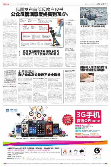 我国发布首部反腐白皮书 公众反腐满意度提高到70.6%