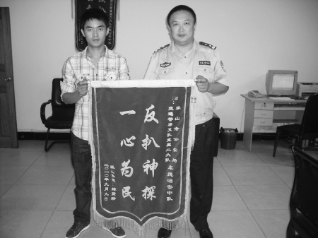 老人送锦旗感谢“反扒”民警