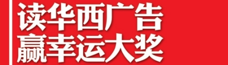 在元旦小长假来临之际,我们启动“读华西广告,赢幸运大奖”第九期活动。只要认真翻阅今天本报的广告内容,就有机会将幸运领回家,为你的元旦再添一份喜悦!
