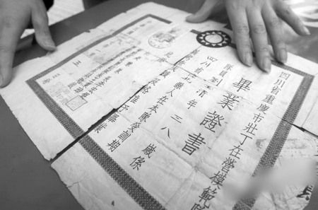 近日,集邮爱好者陈焰峰在重庆生活网论坛里展示了一本壮丁毕业证书(下图),该证书的收藏者是江北一位藏家。 记者在该藏家那里看到,证书有照片,内容为“四川省重庆市壮丁在营模范队,队员刘玉清,年38岁,系江北县人,在本队受训期满考查成绩及格准予毕业”,落款“市长兼队长李宏锟、警察局长兼副队长王秉璋、军训教官兼副队 长蒋勉诚”,盖有三人印章。核发时间为1938年1月5日。 该藏家还有“巴县团管区司令部司令”签发的一本《缓征证》,显示一名叫李懋修的39岁男子,因独负家庭生计缓征壮丁。 重庆市档案馆相关负责人介绍,这份普通壮丁毕业证是该市发现的第一例,国内其他地方也没听说过。 据《重庆晚报》 |