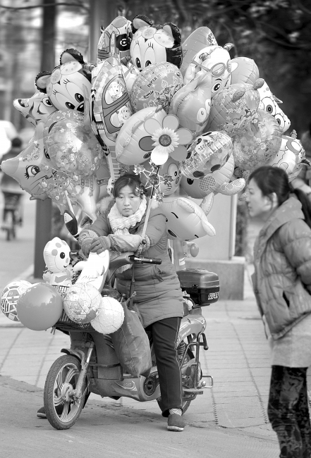 喜迎新年气球满大街叫卖 尽管兔年还未来到,但在成都大街小巷,已经可以看到不少满载新年饰品的小贩沿街叫卖。许多市民也开始选购中国结、红灯笼、大福字、年画、挂件等具有 中国传统特色的新年吉祥物。 这些红彤彤一片的新年饰品,充满着浓浓的年味。 华西都市报记者朱建国摄影报道 单位聚会先跑1500米热身 即将进入2011年,成都不少单位开始举行各种类型的聚会。昨日上午10点过,某单位的聚会形式有点特别:中午聚餐前,员工们得先跑100米、200米或1500米热身。 在成都三圣乡一农家乐内,该单位员工把场地改成小型运动场,跑道设在进出农家乐的主干道上。两侧用气球、彩旗做标识。 “这绝对不止1500米,上坡下坡,累得很啊!”跑完全程,不少参赛员工上气不接下气。不过等待他们的,不仅是现金奖励,还有厚厚一沓的购物券。 华西都市报记者陈黎吴小川摄影报道 降尘保洁千个喷头吐水雾 “这个人造水雾很好看嘛。”昨日,路过成都一环路西门车站立交桥施工工地的市民发现,工地蓝色围栏上边,每隔一米就有一个喷头在不停地喷着水雾,朦朦胧胧的水雾在阳光的照射下,真还有点“诗情画意”。 工地负责人说,雾不是拿来 看的,是用来降尘保洁的。负责修建一环路西门车站立交桥的施工单位是一家外地公司,为降尘保洁,他们在工地沿线的围栏上安装了近千个造雾喷头,24小时不停喷水雾降尘。 华西都市报记者刘陈平摄影报道 |