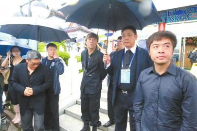 从前一天夜里,北京就开始一直下雨,到了昨日早上,城区内很多地方的雨都小了许多,但八宝山所在的西五环地区仍然雨量不小,不到7点,就有很多陶伟的好友、球迷冒雨来到八宝山殡仪馆。在殡仪馆的东侧告别厅内外,“音容常在、陶伟千古”几个字在雨中显得格外肃穆。“这是连老天爷都在为陶指导送行啊”,人群中,一位手捧鲜花的球迷抽泣着说。