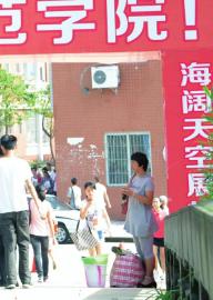 来自成都新津县的小雪(化名)在家人的簇拥下,来到了新生签到处。爸爸右手拖着行李箱,左手提了一个编织袋,妈妈拿着手提电脑,小雪则在一旁玩着手机,连签名都由爸爸“代劳”。“来看一看孩子的新世界,她马上独立了,想再为她铺一次床、提一次行李。”小雪妈妈告诉记者。