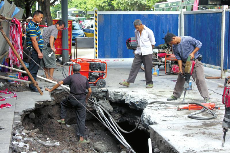 “我们接到市民反映,并经实地勘察后,于8月30日开始在此动工,准备先破土勘测地下管网铺设情况。”一名施工人员告诉记者,现在初步判断是由于雨水把地下泥土冲走,破土施工后,将对大坑进行填充。