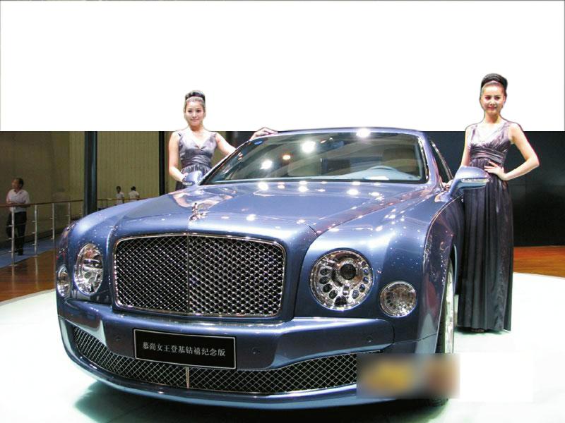世界顶级豪华轿车品牌——宾利,携旗下五款重量级车型亮相。其中尽显尊贵优雅的慕尚女王登基钻禧 纪 念 版 (Mulsanne Diamond Jubilee),是为庆祝英女王登基60周年而精心设计的限量版车型,于本次车展现场隆重登场。