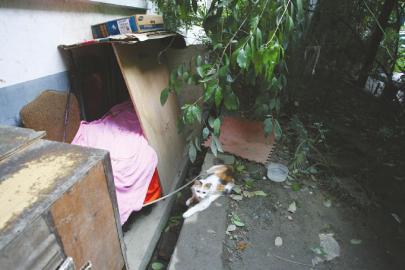 家住西体路7号28幢的宋女士10年来一直在收留流浪猫,最多的时候达到50多只。为了照顾好这些小猫,她在大院里搭了6个棚子,每天要花近8个小时喂猫,清理猫窝,打扫猫粪。她每个月1300元的退休金几乎全花在这些猫咪身上了。但宋女士收留的流浪猫也给邻居们的生活带来了不小的影响。院子的绿化带里、楼道里常常有猫咪的排泄物;一到春季,猫咪在院子里叫唤,吵得大家睡不好觉。