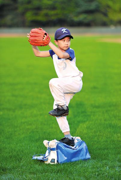 身着26号队服的熊斯威13岁,是棒球队里的接手。不管是内场接球,还是外场接球练习,他一接一个准。