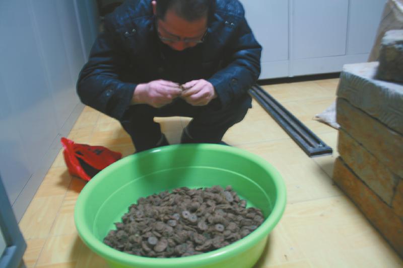 华西都市报记者谢颖摄影报道文物局工作人员清理古钱币。