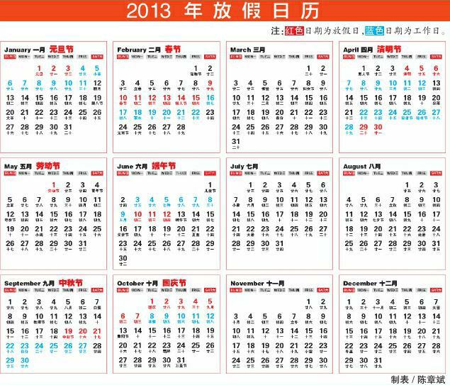不过,2013年假期虽然比较分散,但节假日依旧不少。由于2012年的中秋恰巧在国庆之前,中秋假期也就和国庆节重逢,根据安排,中秋节、国庆节9月30日至10月7日放假调休,共计才8天。