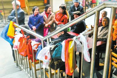 像胡大爷这样,早早排队买馒头的居民还有很多,在栏杆上挂袋子,成了大家的“规定”。“馒头少,需求大,就应该先到先得。通过袋子来决定购买顺序,很公平。”胡大爷说。