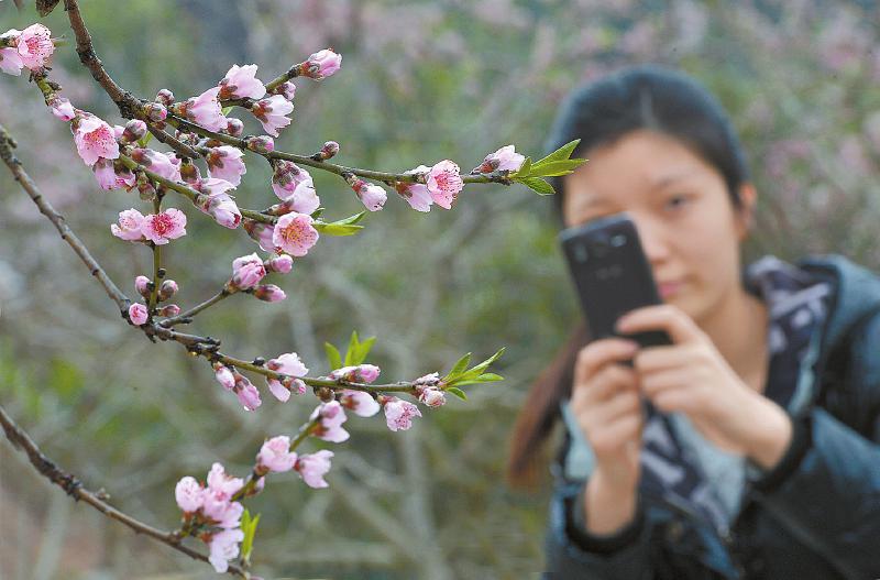 立春前成都气温持续升高,温暖的天气就像“催化剂”一般,让龙泉山上的桃花提前悄悄绽放。