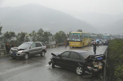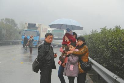 淅沥的雨中,车辆被撞坏的老人小孩撑着雨伞,焦急地等待着救援。一些热心的驾驶员来回穿梭,尽力疏散着可以通行的车辆,浑身上下,被除夕前的这场春雨淋得水滴。