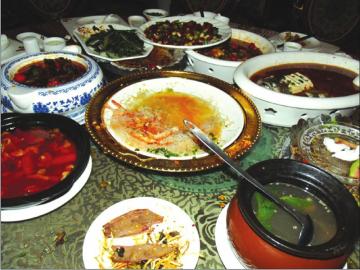 毛先生介绍,一般单位团年选择的订餐标准以400元左右居多,还有一些单位甚至选择在农家乐杀过年猪的方式来聚餐。“团年单位留下剩菜剩饭的时候也有,但农家乐不愁‘消化’,可以将剩饭剩菜喂给鸡鸭猪等吃。