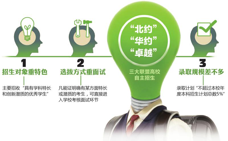 1、招生对象重特色对于没有学科特长和创新潜质不足、仅是学业突出的学生,不再作为自主选拔录取改革试点的生源主体,这部分学生可以通过高考录取体系择优录取。