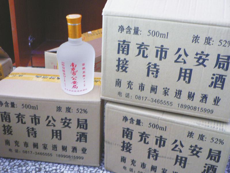 4月1日,有网友报料:“南充公安局也做定制酒?”其中一张南充市公安局招待专用酒的照片在微博上热传,引来关注。网友纷纷质疑,公安局专用酒是真还是假?经南充市工商局初步调查,该酒厂因涉嫌违反相关法律规定,部分违法产品已被扣留,其负责人已经到工商局接受调查。
