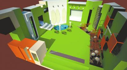 城市作为我们赖以生存的环境,与每个人的生活都息息相关。由城市的发展阶段衍生出当下的生存状态,通过集约型和发散型的两种不同模式,来探讨创意空间的新理念,这是设计师王巍的构想。用不同的材料,体块的穿插搭建起城市印象的外围,形成集约型和发散型两种不同的城市分布模式,来展现城市的形成。而内部则利用参展的材料构建城市内部的环保脉络,通过水、空气的循环,来再现生态、健康的自然环境。