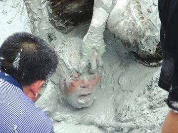 老人陷进泥潭,只剩头部露在外面。(内江市消防支队供图)