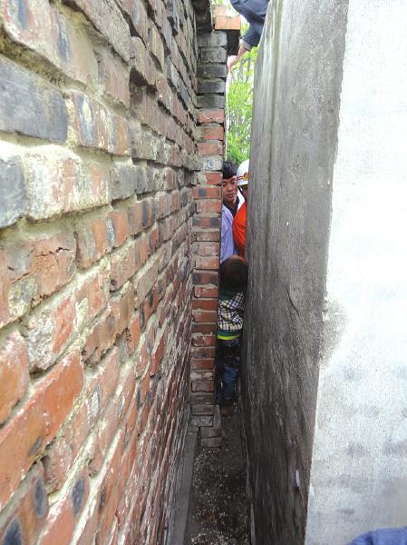 原来,学校围墙和配电房之间有一道墙缝,强强和同学玩躲猫猫游戏时,想从这个缝里钻过去,没想到人还没过去,头就卡在了配电房水泥墙和围墙立柱之间。