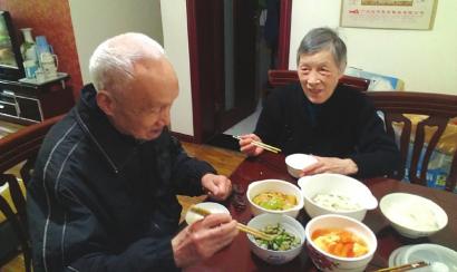 如此低价格,口感质量何如呢?对此,已经深有感触的郭正元老人表示,“三菜一汤,很丰盛,足够我们老两口吃了。先不说别的,看着卫生吃着放心,用的都是健康的油,跟家里做的没什么两样。”记者看到,两位老人的三餐一汤包括青瓜肉片、清炒胡豆、烧豆腐、番茄蛋汤,十分清爽可口。社区工作人员曾女士介绍说,两位老人家的菜都是根据他们的口味要求单独做的,“他们满意,我们才安心。”