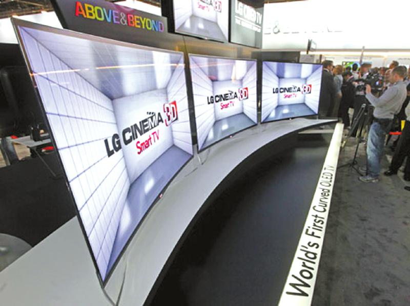 今年1月,LG向全球消费者展示“世界第一台曲屏OLED电视”。OLED电视机身仅4毫米厚,比苹果IPAD还要薄。特02-03